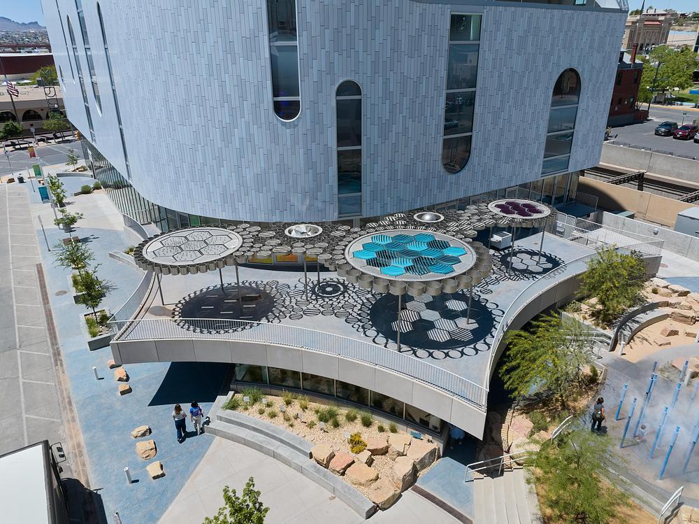 Another notable project, Weatherscape, was recently completed in El Paso, Texas, as part of the new El Paso Children’s Museum—known locally as “La Nube.” Measuring approximately 70 by 40 feet, the installation functions as a sculptural canopy that goes far beyond the role of a typical shade structure. Instead, Weatherscape operates as an interactive environmental system designed.